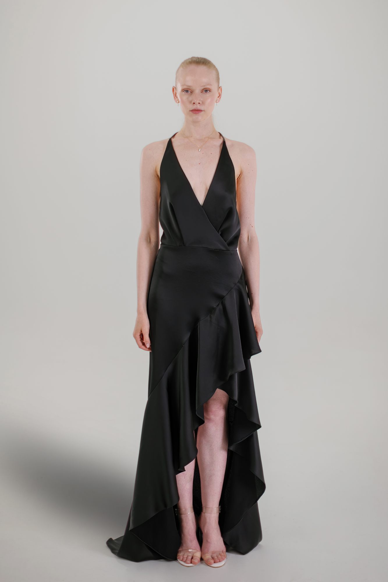 NEBESKI BACKLESS LONG EVENING DRESS - BLACK