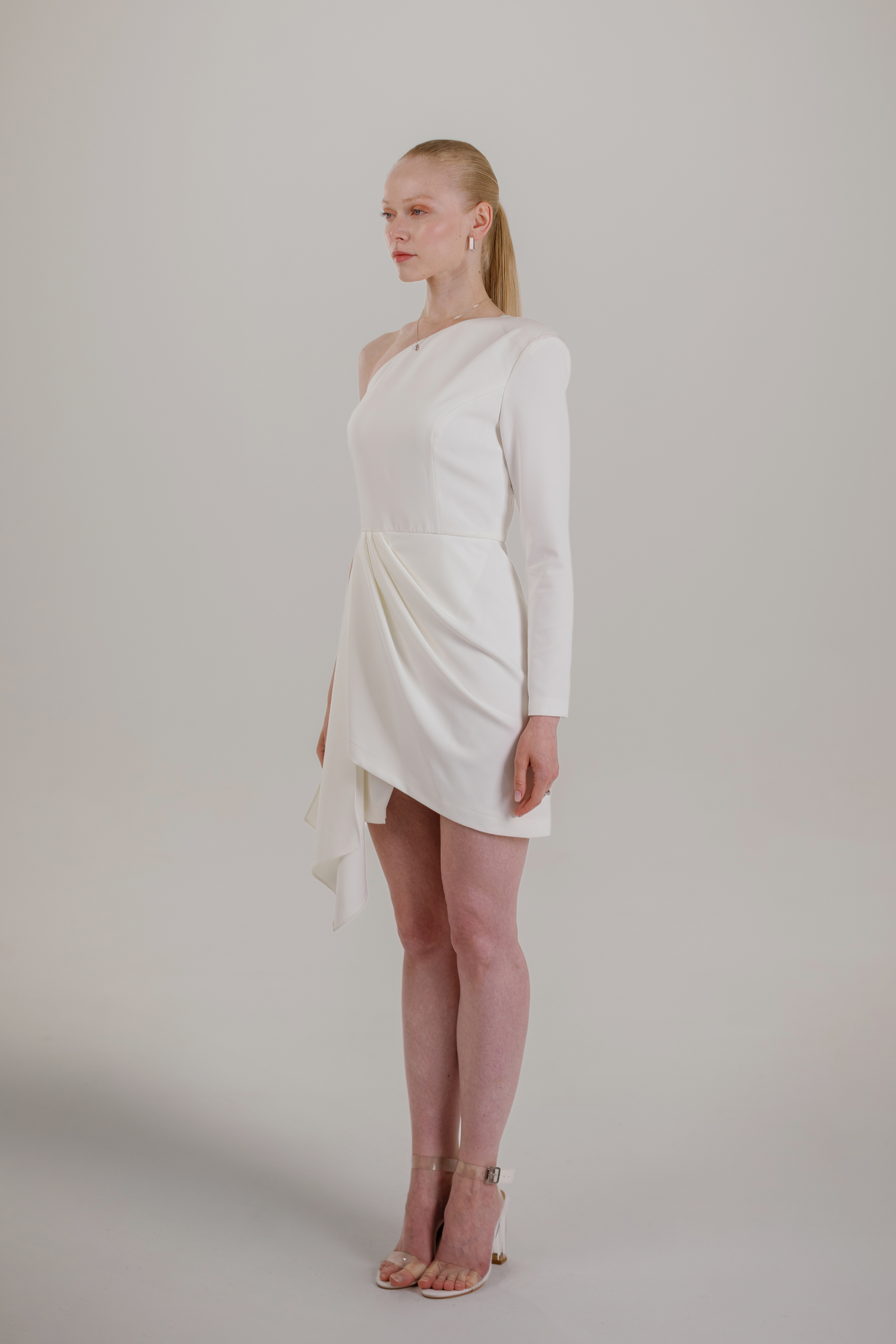 SANJIVA ASYMMETRICAL COLLAR MINI DRESS - WHITE